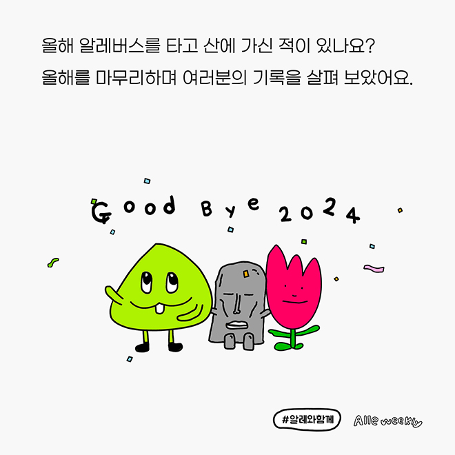 올 한해도 알레를 믿고 이용해 주셔서 감사해요. 여러분들 덕분에 작년에 비해 더 성장할 수 있었습니다. 2025년에도 편안하게 이용하실 수 있도록 최선을 다 할게요. 연말 마무리 잘 하시고, 빛나는 새해를 맞이 하시길 바랍니다~ 알레!