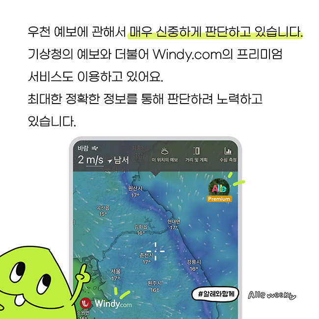 알레는 또한 Windy.com 의 유료 프리미엄 서비스를