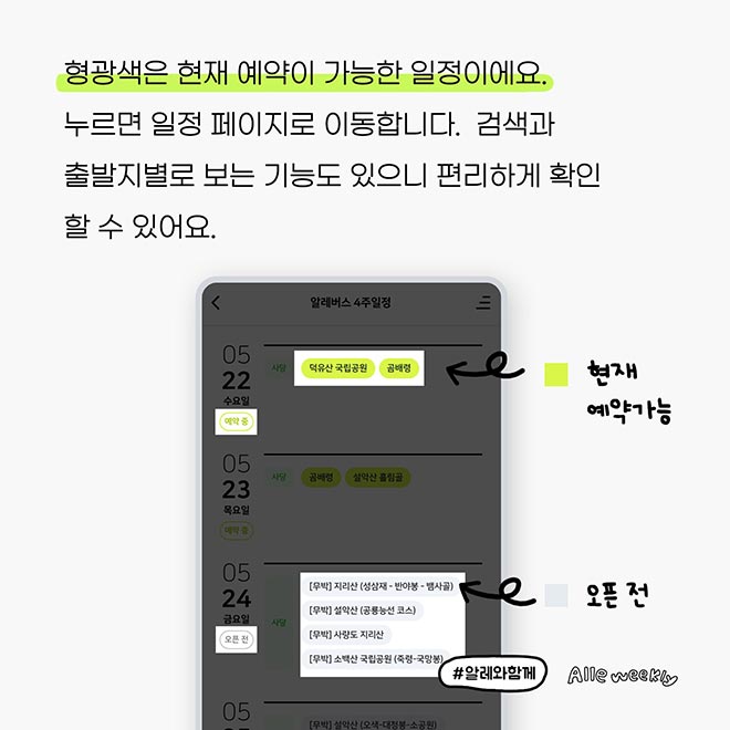 이제 더 편리하게 알레버스 스케줄을 살펴보세요~ 알레!