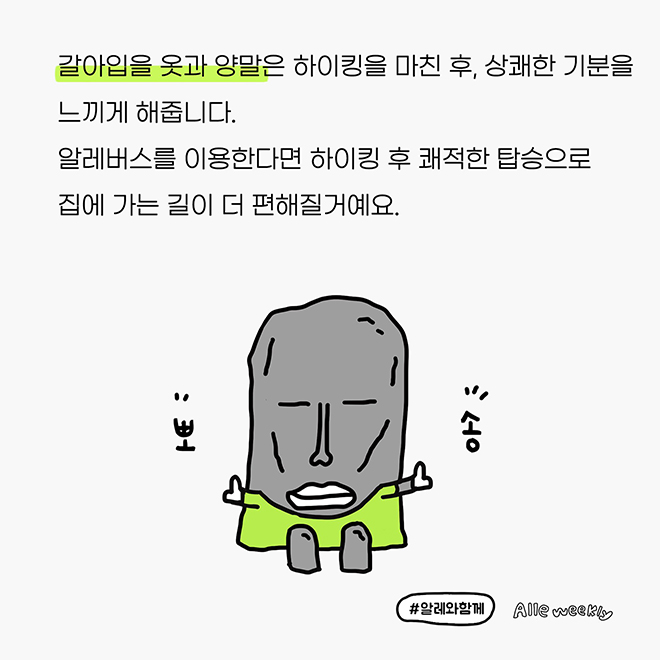 땀에 젖은 옷과 양말, 그리고 내 몸은 하이킹을 마친 후 찝찝해지게 되는데요.