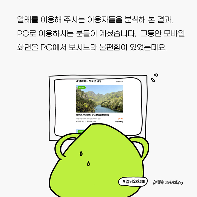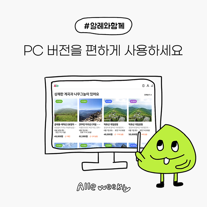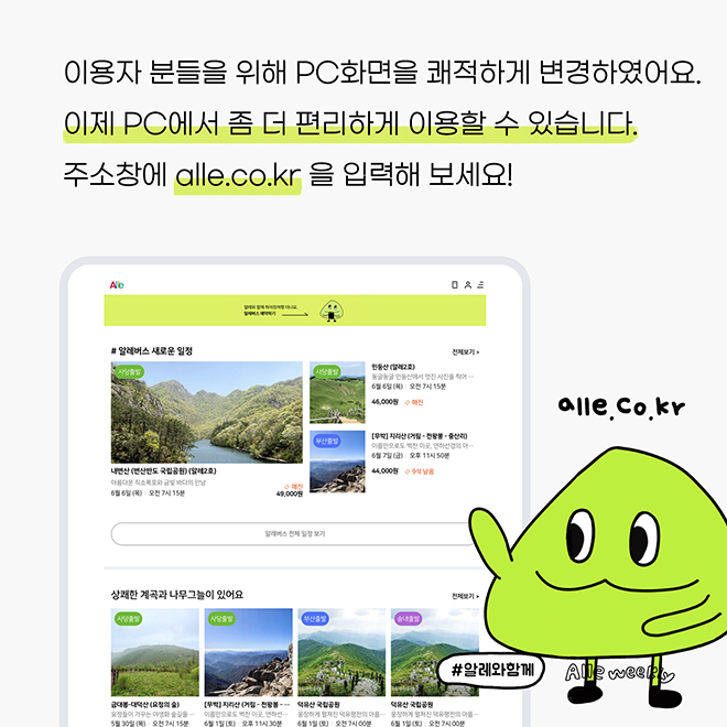이제 PC와 태블릿 등에서도 알레의 서비스를 보기 좋게 이용할 수 있습니다.